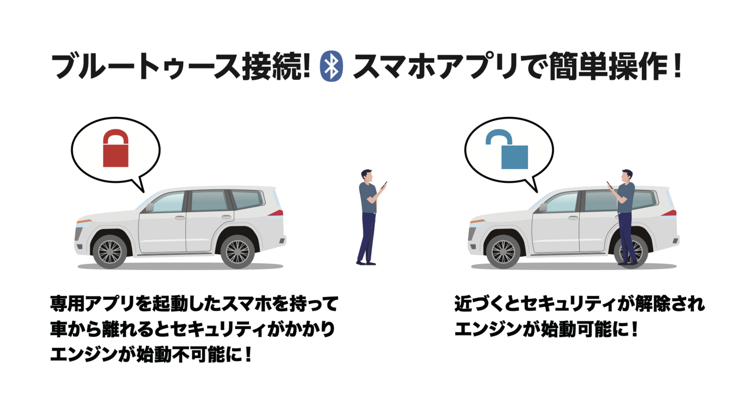Secure FUSE(セキュアヒューズ)は、強力な車両盗難防止装置です。 特許取得済みのこのシステムは、近年急増するCANインベーダーや GAMEBOY(キーエミュレーター)といった最新の盗難手口にも対応。 あなたの愛車を守ります。 スマートフォンと連動したSecure FUSEは、車のセキュリティを スマートフォンで管理することが実現できます。 セキュリティが有効な状態では、車は一切動かせません。 専用アプリを起動させていれば、バックグラウンドで自動的に セキュリティのオン/オフをコントロールできます。 たとえ巧妙な手口で車内に侵入されても、